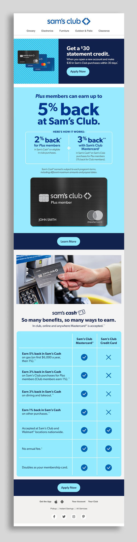 I oversaw all creative for Sam’s Club Mastercard and private-label credit cards, guiding the financial partner on designing content that aligned with Sam’s Club’s core branding and strict style guidelines.